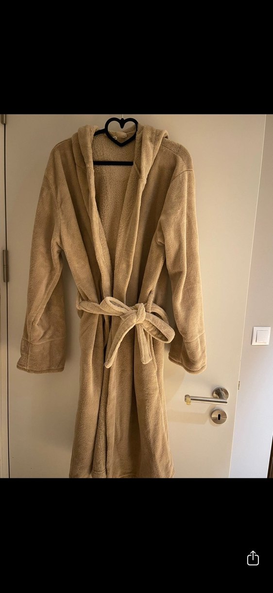 Kapüşonlu, bel bağcıklı, yumuşak ve rahat kumaştan yapılmış bej renkte uzun kollu sabahlık. Evde dinlenmek için ideal. Hiçbir kusuruyoktur, giyilmedi.