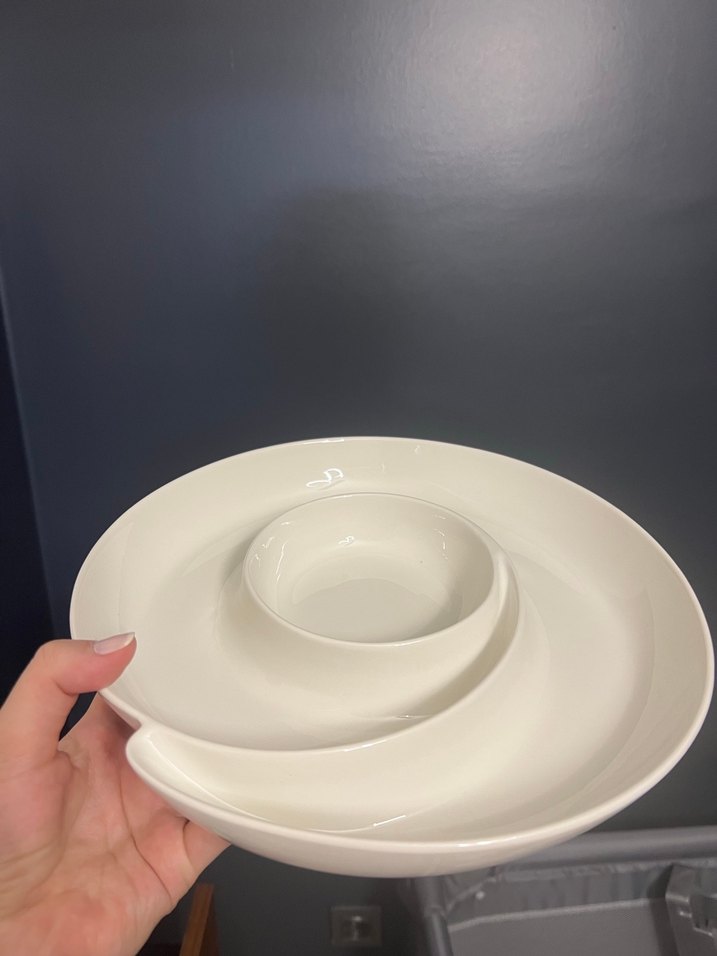 Hiç kullanılmadı. Beyaz, parlak yüzeye sahip bölmeli servis tabağı, farklı yiyecekleri ayırmak için uygundur. ️