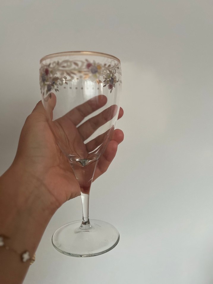 İnce ayaklı, beyaz çiçek deseni bulunan şık bir bardak. Zarif görünümüyle sofranıza şıklık katıyor. 11 adet olduğu için fiyatu bu durumda