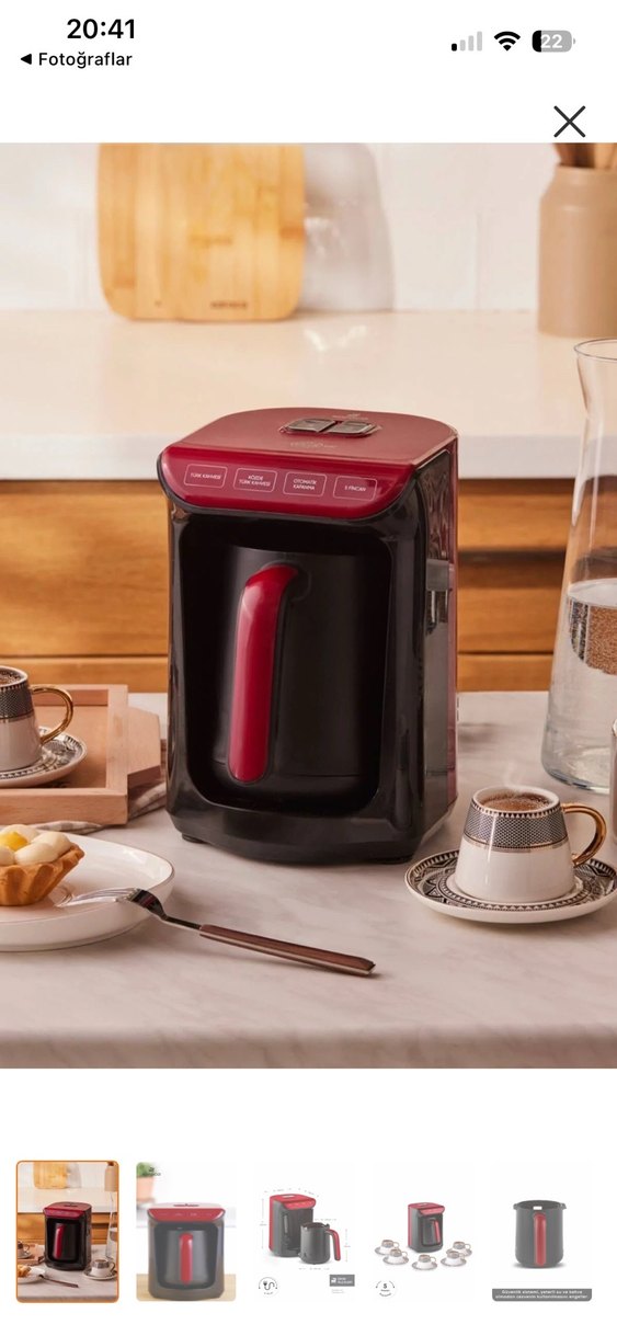 Bordo renginde modern tasarıma sahip kahve makinesi Karaca marka, kullanımı kolay kontrol paneli ile taze kahve demlemek için uygundur. ☕ az kullanılmıştır