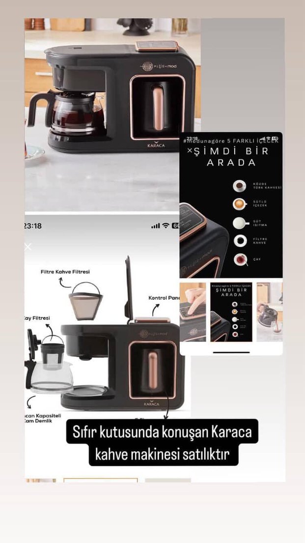 Karaca marka, koyu camel renk kahve makinesi kontrol paneli ve filtre sistemi ile birlikte. Cam demliği kapasite göstergeli. Sıfır kutusunda, kullanıma hazır. ☕