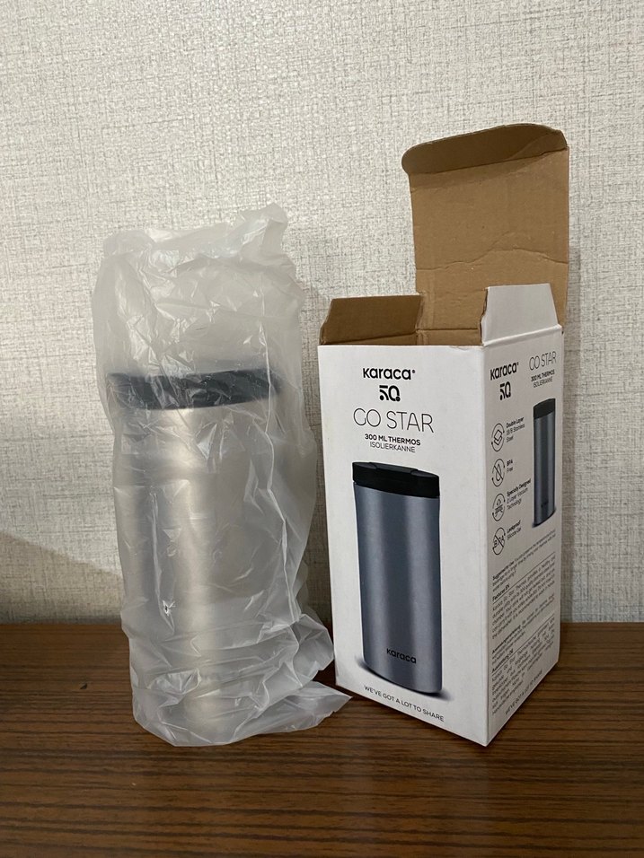 Karaca Co Star 500 ml termos, gri renkte ve koruyucu torba ile birlikte gelir. Sıvıların sıcaklığını korumak için uygundur. ☕