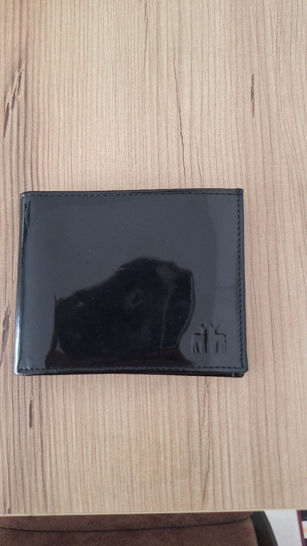 Siyah parlak yüzeyli cüzdan, iş stiline uygun sadetasarıma sahip. Hiç kullanılmadı