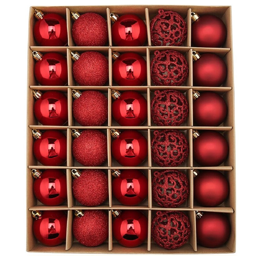 Parlak, mat, simli ve desenli farklı dokularda kırmızı yılbaşı topları seti. SIFIR KUTULU KARACADAN ALINMIŞTIR KUSURSUZ ŞIKLIKTA