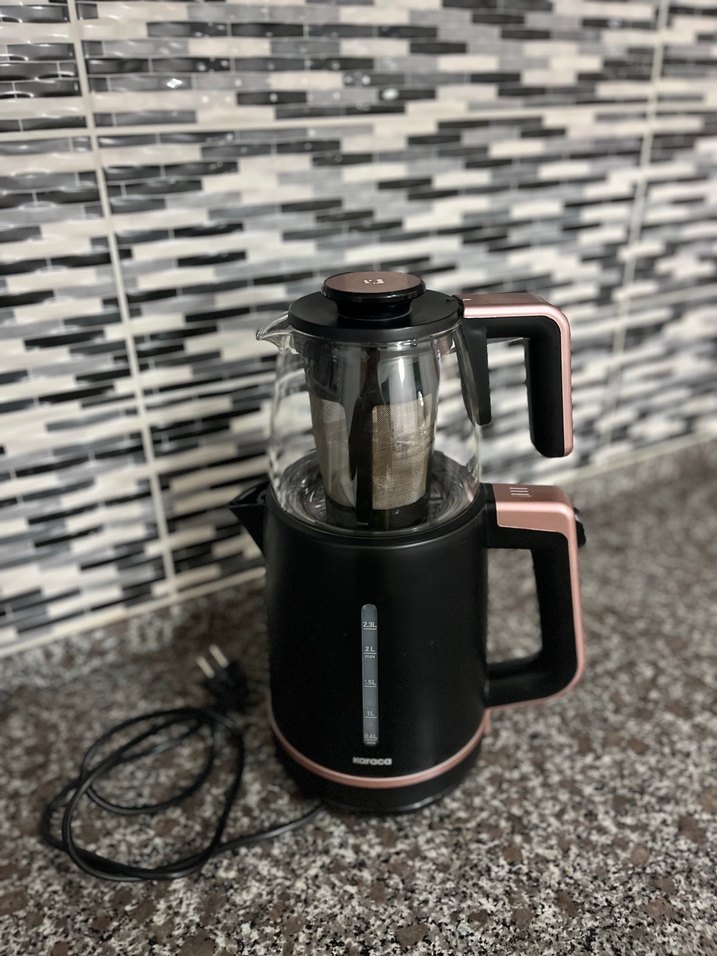 Karaca marka garantisi ve kutusu yoktur hiçbir sorunu yok göründüğü gibidir.Cam demliği ve dahili demliği olan siyah elektrikli çay makinesi, kullanışlı ve şık koyu tasarıma sahiptir.