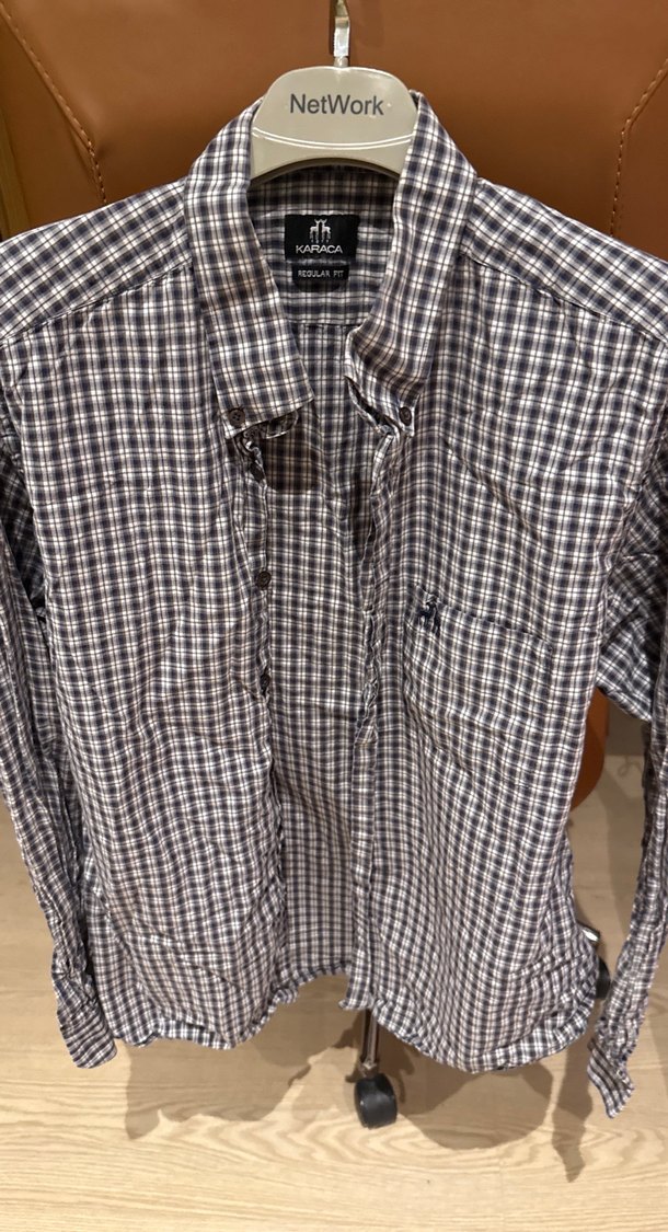 Pamuk kumaştan, düğmeli ve yakalı erkek gömlek. Uzun kollu, regular fit ve gri-kahverengi kareli desende, gündelik rahat stil için uygun.