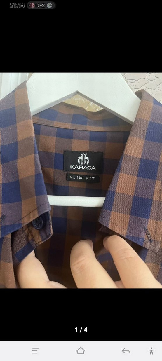 Karaca markalı, slim fit kesime sahip, düğmeli, notalı yaka erkek gömleği. Sentetik kumaştan, koyu kahverengi kareli desende, uzun kollu ve normal boyda, günlük kullanıma uygun.