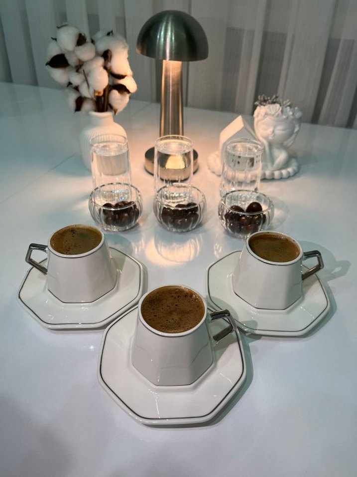 Beyaz altıgen Türk kahvesi fincanları, kutuludur sadece bır kaç kez kullanıldı ihtiyaç fazlası olduğu için satılıyor . ☕