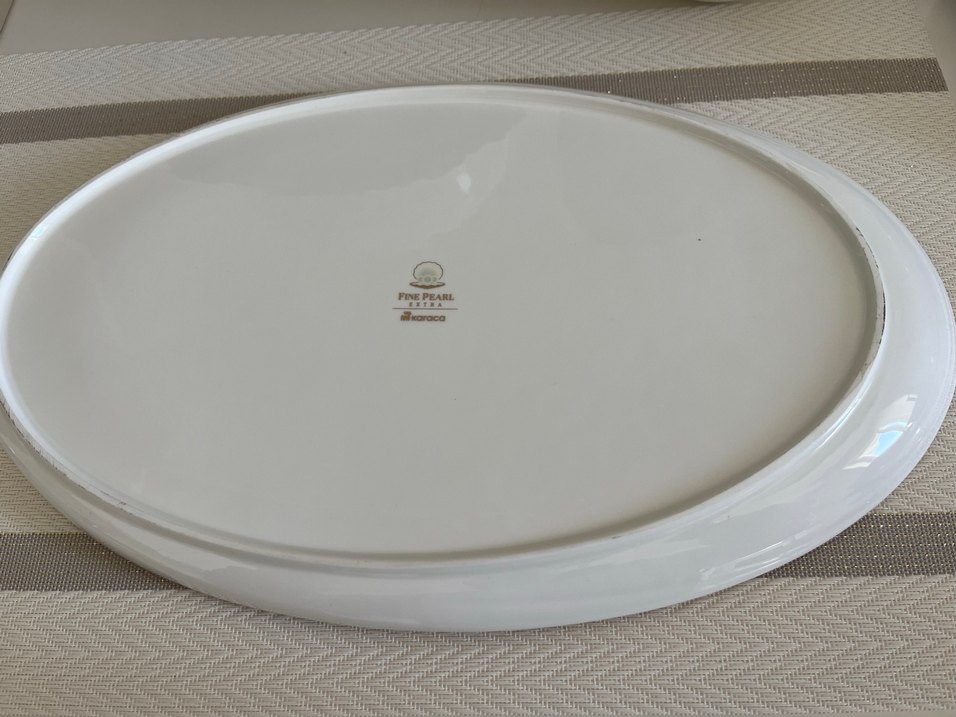 Fine Pearl markalı parlak beyaz porselen servis tabağı, yemek sunumları için uygundur. Büyük boy ebat 37/23