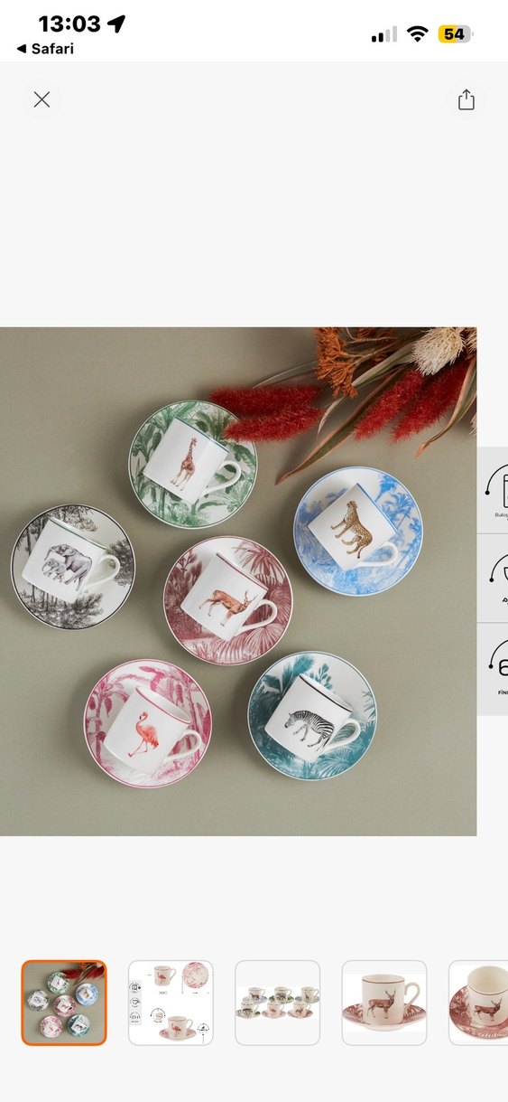 Her biri farklı hayvan figürlü, renkli fincan ve tabak seti. Az kullandım bi deformesi yoktur satldı