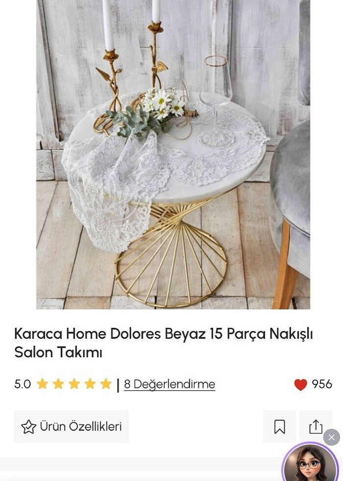 Doleres Beyaz 15Parça Nakışlı salon takimi Bir defa kullandım