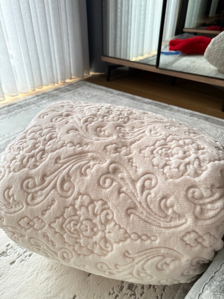 Çift kişilik pudra rengi hiç kullanılmadı çok kalın bir battaniyedir