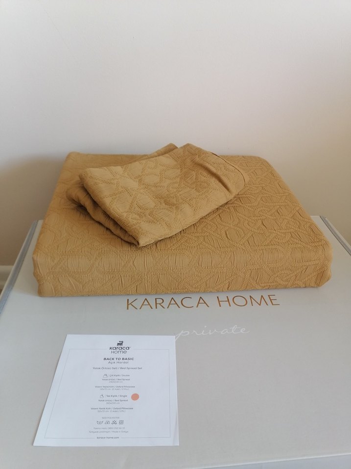 Karaca Home markalı, yatakörtüsü ve iki volanlı yastık kılıfı. İndirimli karaca ürünleri sayfamda görebilirsiniz