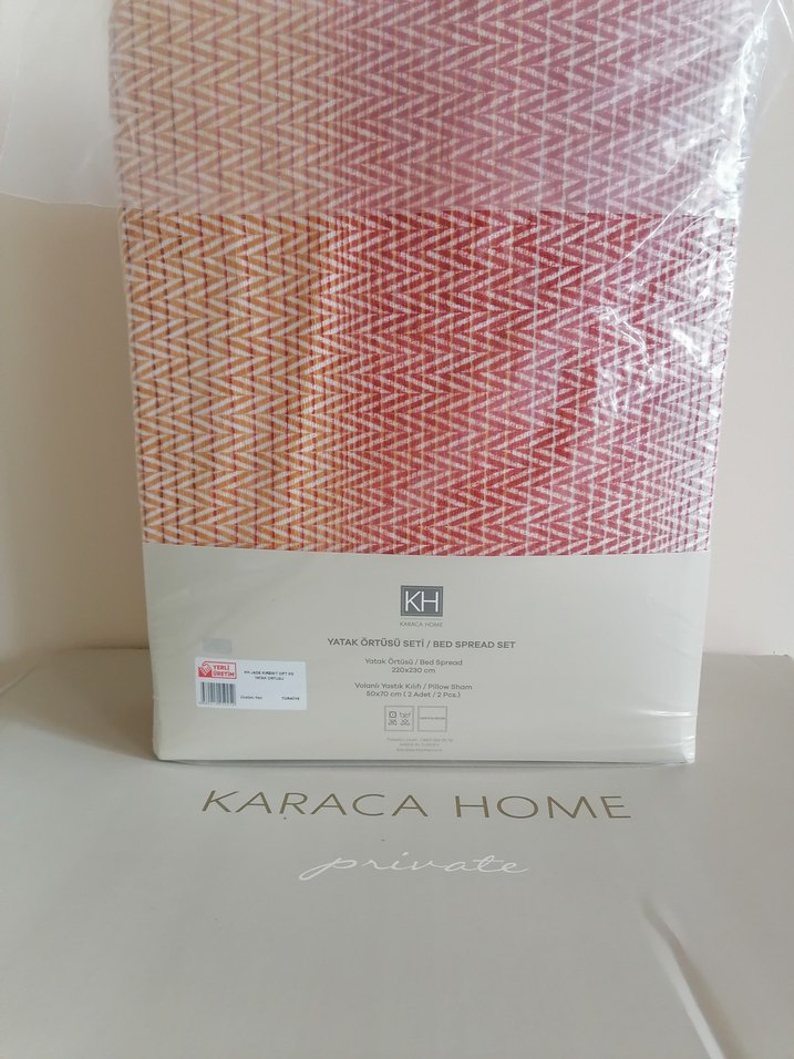Karaca sıfır çift kişilik yatak örtüsü seti. Yatakörtüsü ve iki volanlı yastık kılıfı