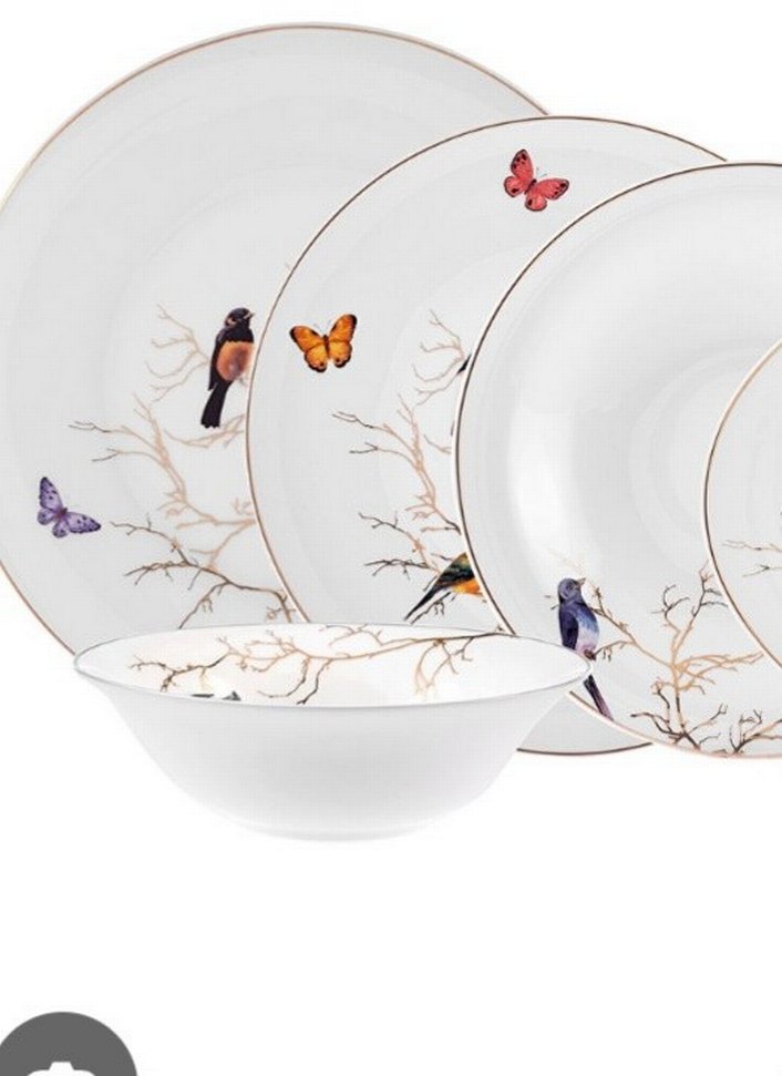 karaca inci serisi Kelebek ve Kuş Desenli Beyaz Yemek Takımı