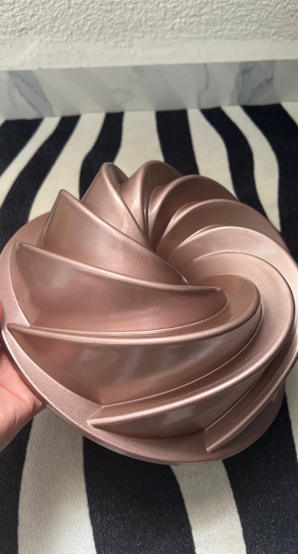 Parlak bej renkli, spiral desenli kek kalıbı, görsel olarak şık kekler için uygundur.