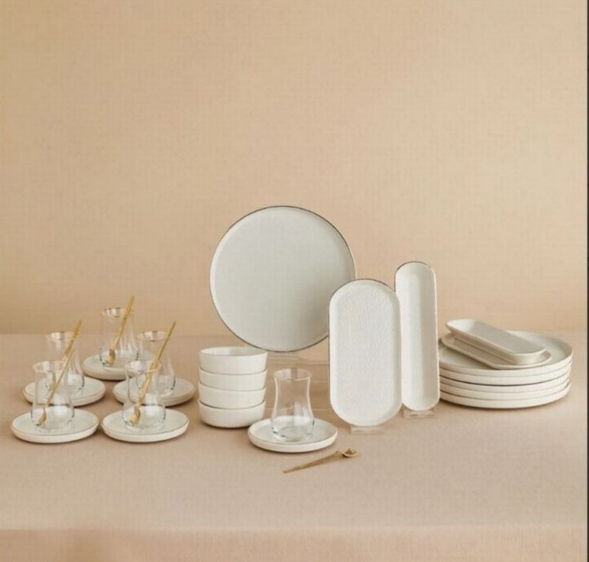 Modern klasik beyaz yemek takımı, desensiz ve şık yüzeye sahip tabak ve kaseler içerir, her yemek ortamına uygundur. ️