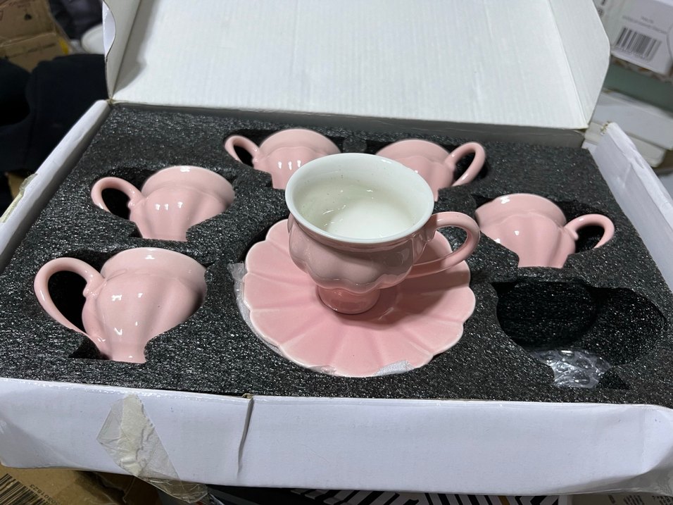 Karaca altı adet fincan takımı bir tanesinin ağzına çok hafif bir hata vardır resimleri ekledim kullanıma engel hiçbir şey yok