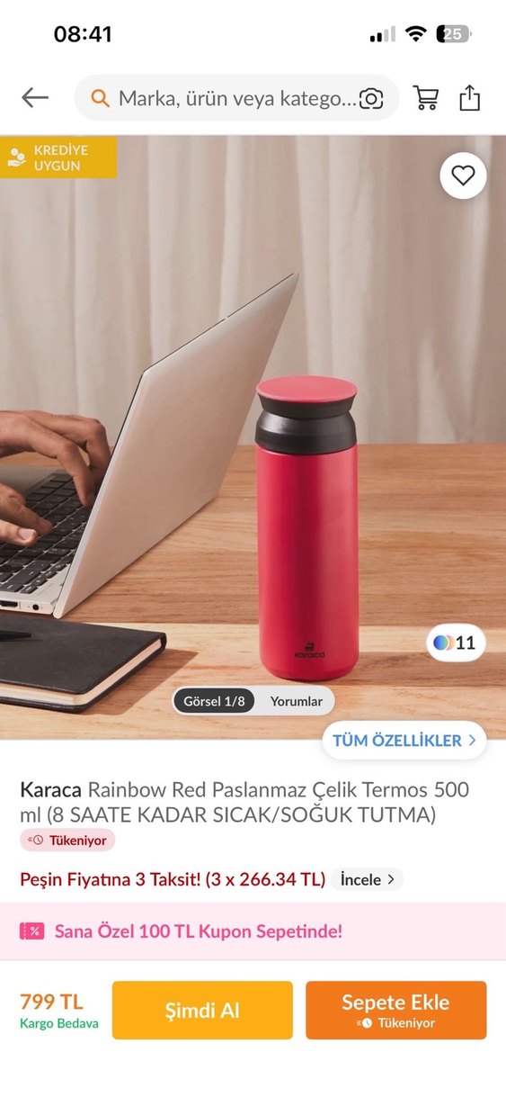 Karaca Rainbow kırmızı paslanmaz çelik termos 500 ml kapasiteye sahiptir ve içecekleri 8 saate kadar sıcak veya soğuk tutar. Dayanıklı yapısı ve güvenli kapağı ile çocuklar için uygundur. Kırmızı olarak geçiyor ama koyu pembe. kapağın üzerindeki kırmızı şey de çıktığı için yapıştırıldı. (Kullanıma etkisi yok) Bunun dışında sorunu yoktur.