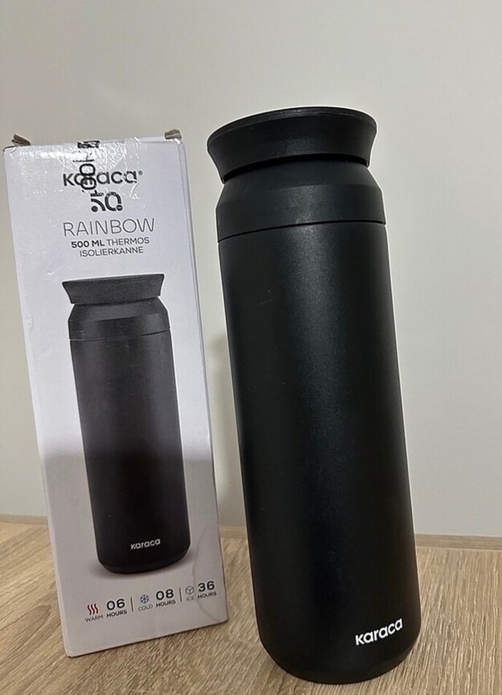 Karaca 500 ml termos ısıyı 10-12 saat muhafaza eder sıcak soğuk şeklinde. Akıtma sızdırma yapmaz sıfır üründür. 500 ml kapasitesi vardır. Ürün orijinaldir hiç kullanılmamıştır.