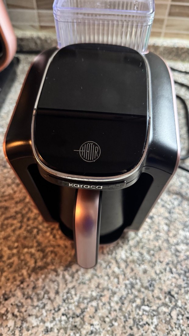 Karaca siyah kahve makinesi, rahat tutuşlu sapı ve şık koyu tasarımı ile pratik kullanım sunar. ☕garantisi mevcut
