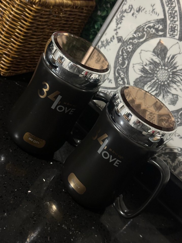 Karaca Metal bakır renk kapaklı ve saplı siyah 34 Love termal kupalar, içecekleri sıcak tutmak için uygundur. ☕