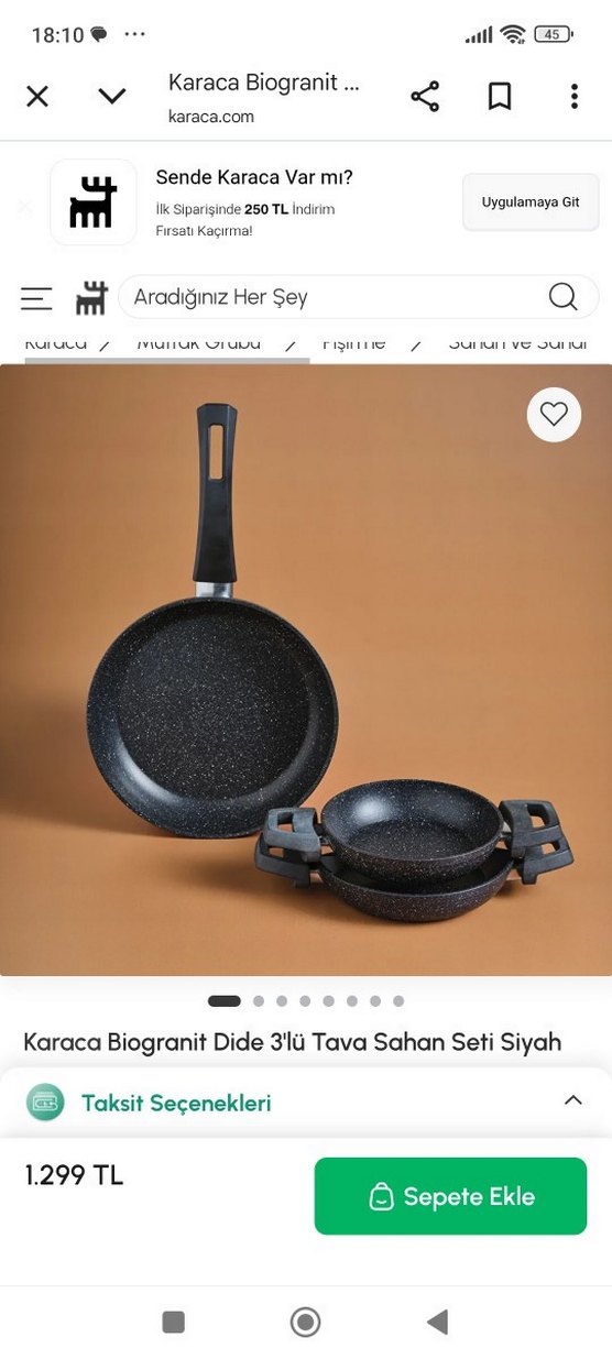 Karaca tava ve sahan seti cm görselde 1 tava 2 sahan