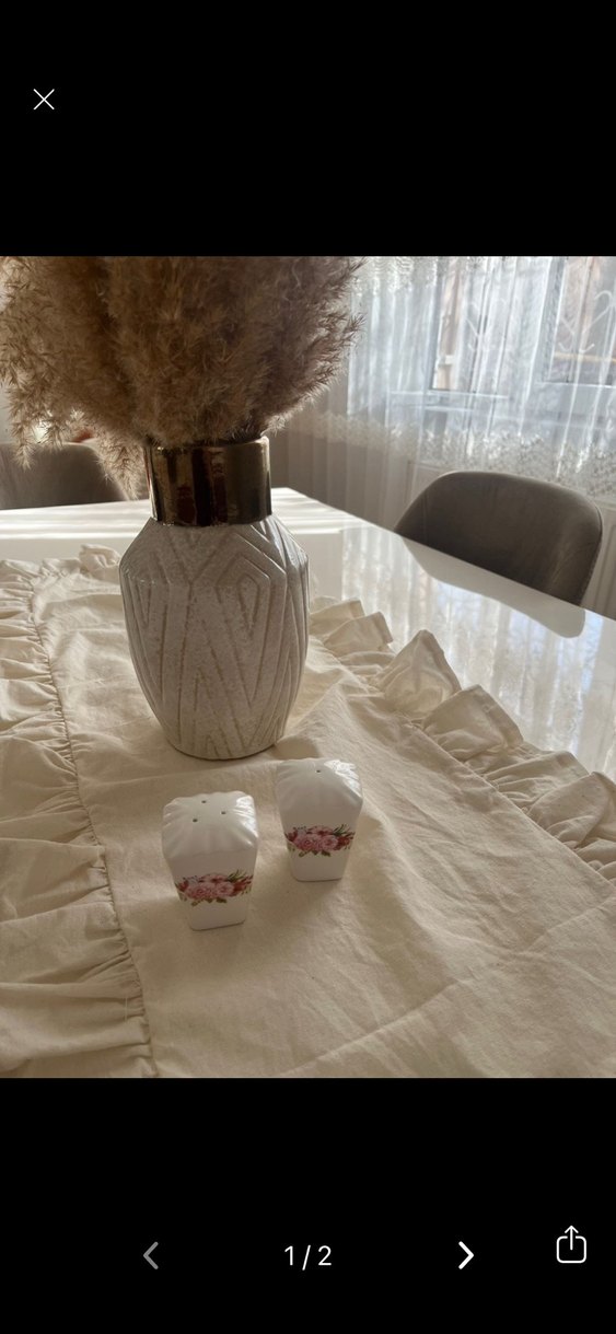 Beyaz pastel renkli, çiçek desenli tuzluk ve biberlik seti, mutfağınıza zarif bir dokunuş katar.