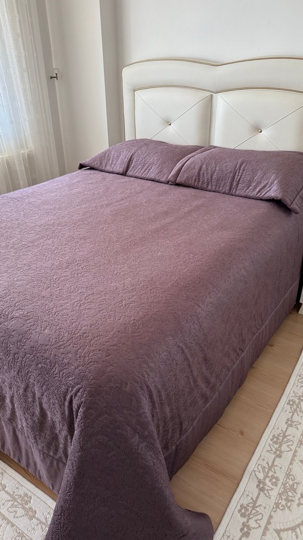 Mürdüm renk Karaca marka yatak örtüsü seti. Yorgan ve yastık kılıfları. Hiç kullanılmadı yeni ve sıfır üründür. Yatağa büyük geldiği için satılıyor.