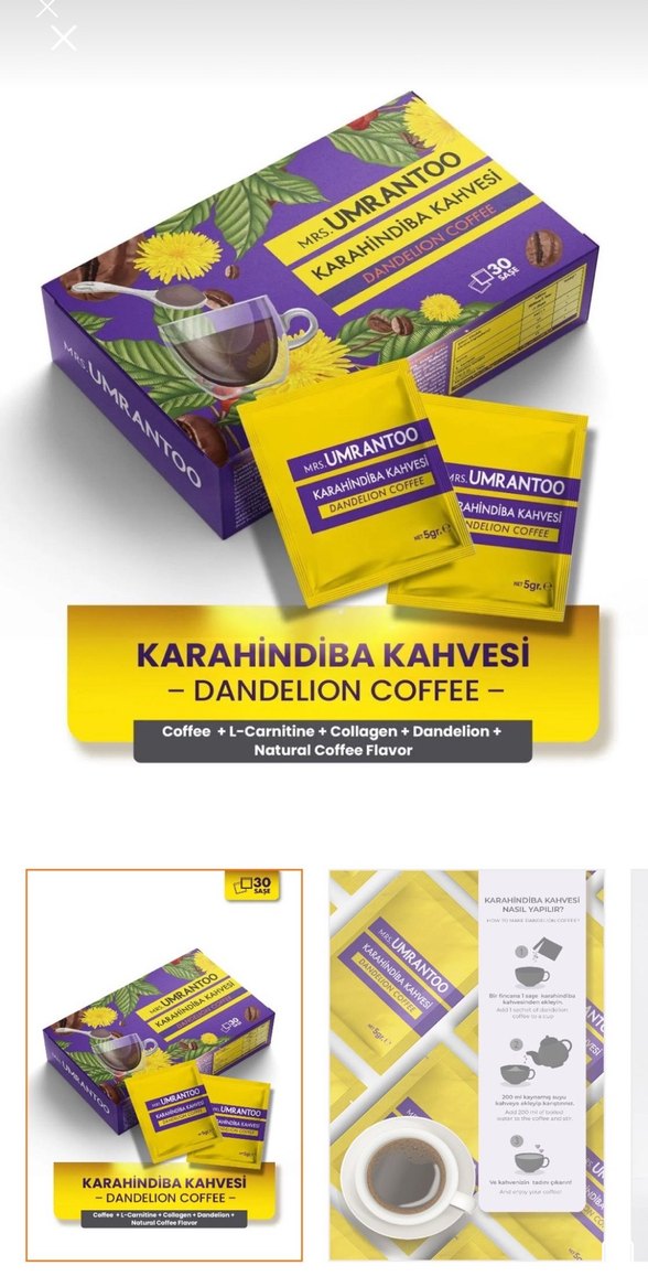 Karahindiba kahvesi içeren paketlik set. Kahve, L-Karnitin, kolajen ve doğal karahindiba aroması içerir. Lezzetli ve sağlıklı bir karışım sunar. ☕