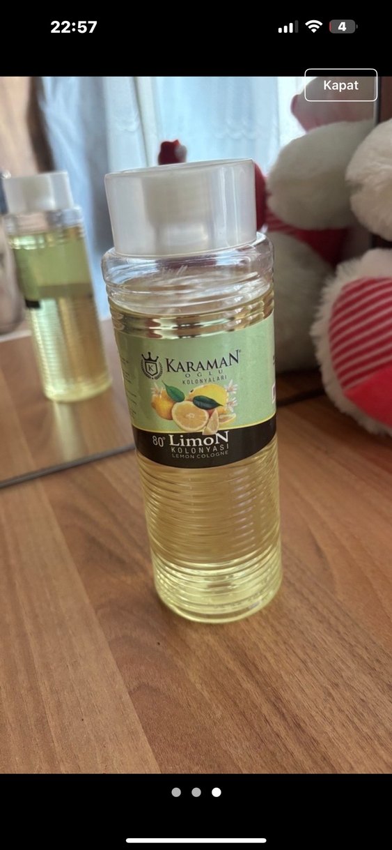 Karaman markalı, 80° alkollü, ferah limon kokulu kolonya. Şeffaf şişede, güvenli kapaklı tasarım. 2 adet