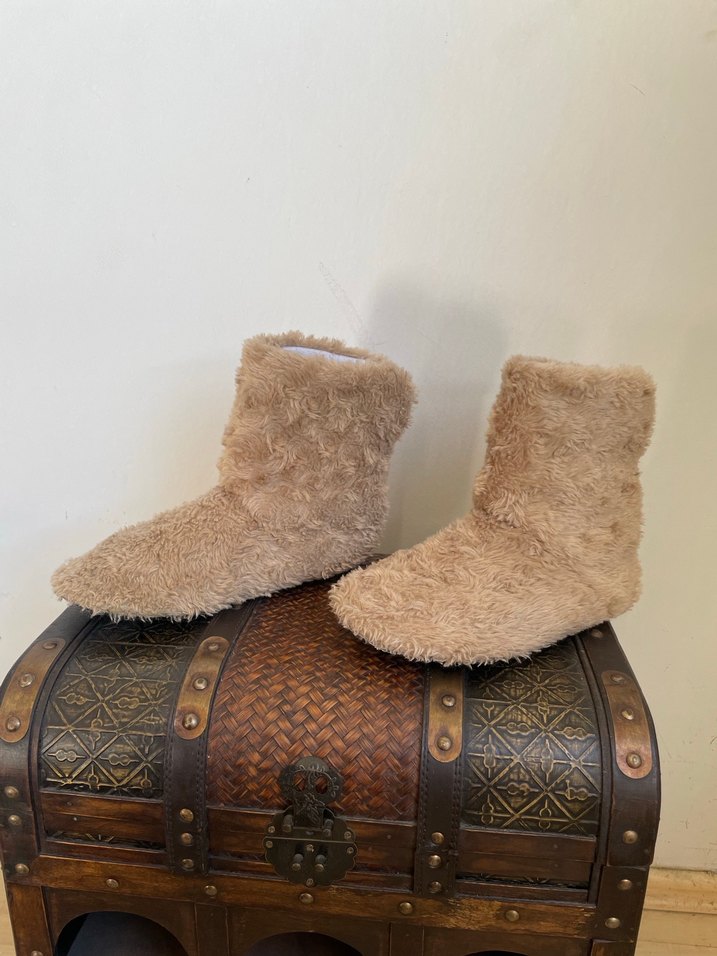 23 cm taban. Az kullanıldı. Katlayabilirsiniz. Son fotoda ufak leke var (yıkanınca çıkar muhtemelen), beyaz kısımda da görüldüğü gibi hafif tüylenme mevcut. Peluşunda, Dışta ve iç dış tabanda hiç bir sorun yok. #KaramelPeluşEvBotu 35-36 No #PeluşEvBotu #PeluşEvBotu36No #PeluşEvBotu35No