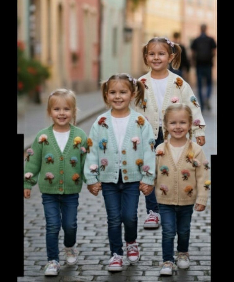 Bol kesim, uzun kollu karanfillerle süslenmiş hırka her renk örüyorum sipariş aliyorum