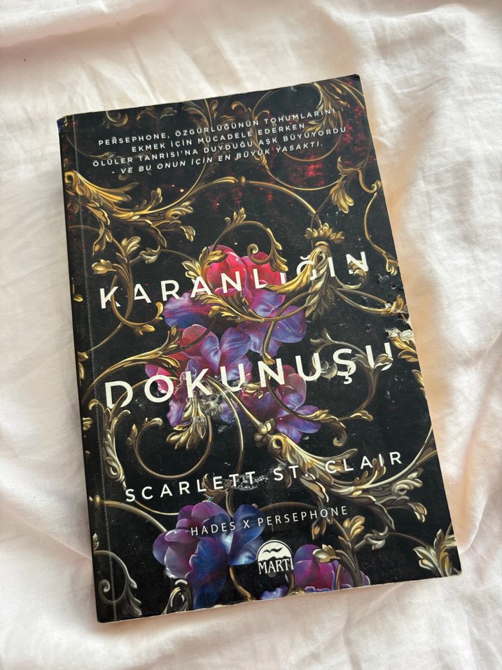 Kedim tırmaladığı için önünde tırnak izleri var.Scarlett St. Clair'ın Karanlığın Dokunuşu adlı romanı, Hades ve Persephone'nin hikayesini anlatıyor. Mücadele, büyüme ve yasak aşk temalarını işliyor.
