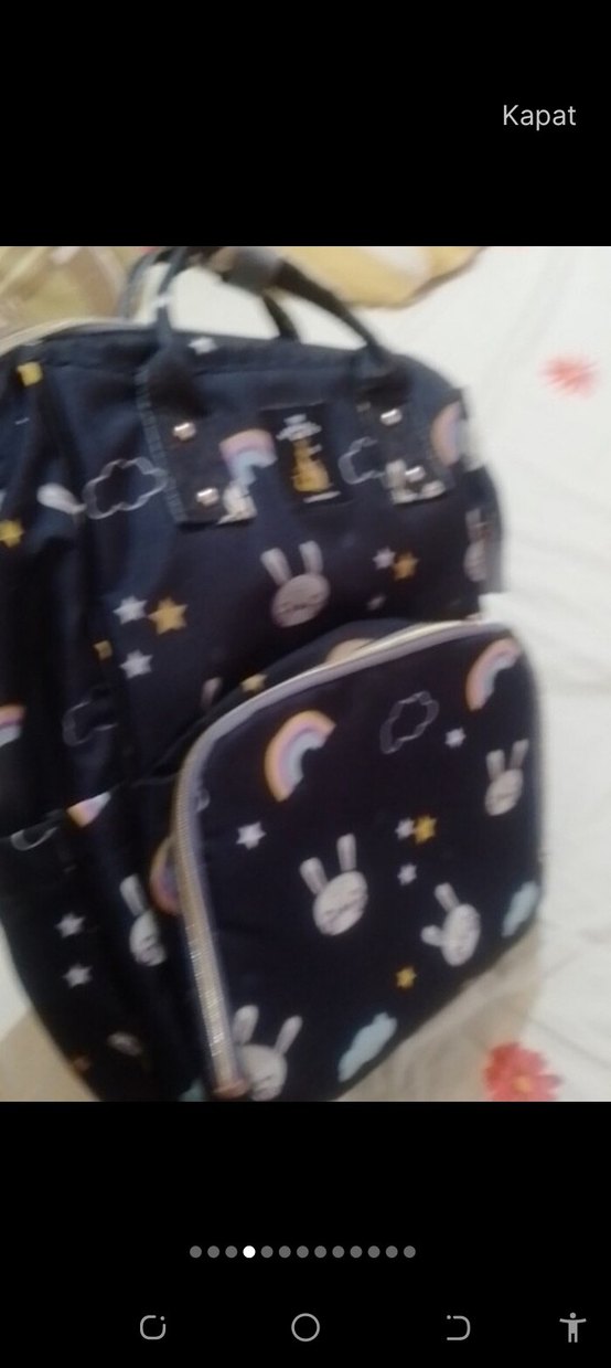 iade yoktur yepyeni cok kaliteli Yağmur boğası, bulutlar, yıldızlar ve tavşan yüzleri desenli çok bölmeli karanlık bebek çantası. Bebek eşyalarını düzenlemek için uygundur.