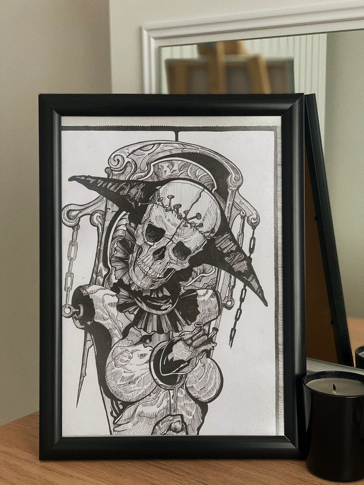 Karanlık Temalı Kafatası Palyaço Tablosu