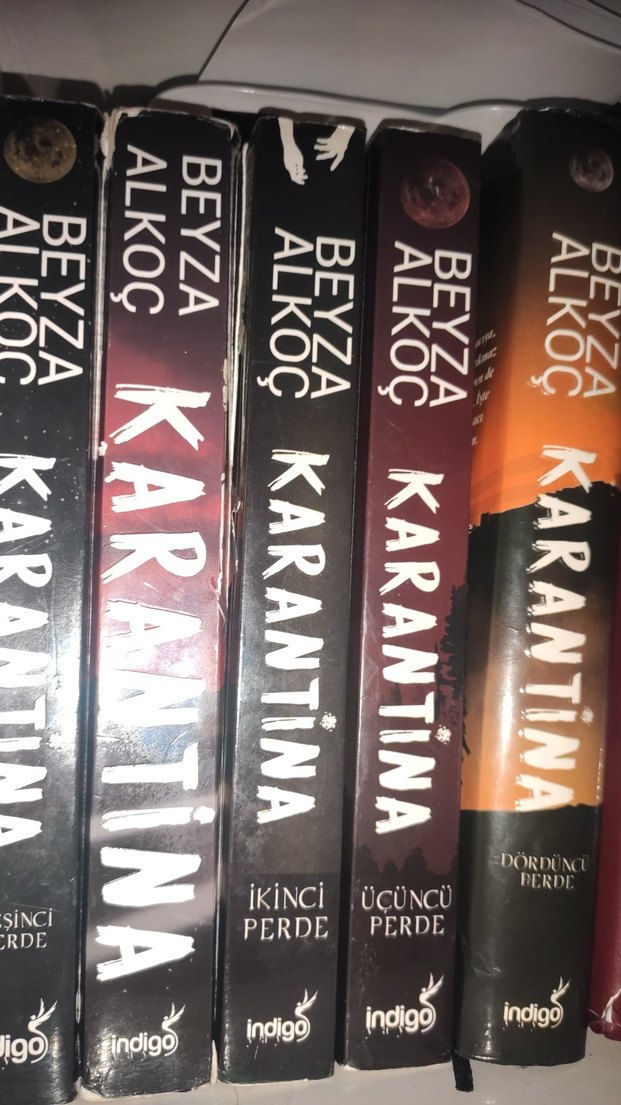Beyza Alkoç'un Karantina adlı romanı, Mahşerin Dört Atlısının hikayesini anlatıyor. ilk kitabın kapağı biraz zarar görmüş o harici bir sıkıntısı yoktur 4. kitap ciltlidir.