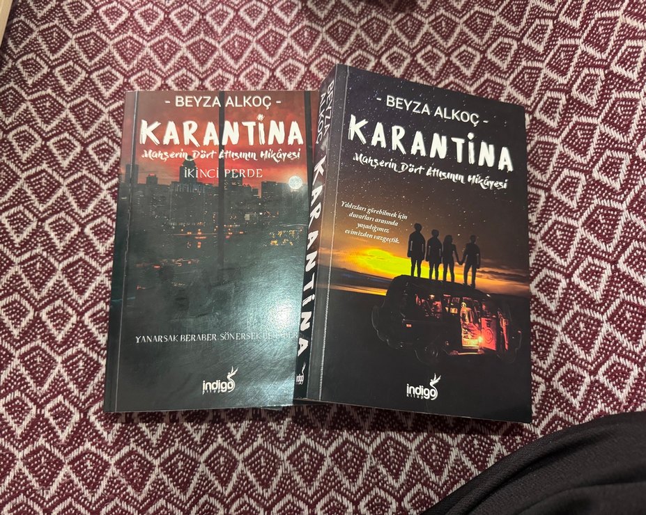 Beyza Alkoç'un 'Karantina' adlı iki romanı, karantina döneminde dört arkadaşın hikayesini anlatıyor. Dostluk ve dayanıklılık temaları işleniyor. Ikiside temiz deformesiz