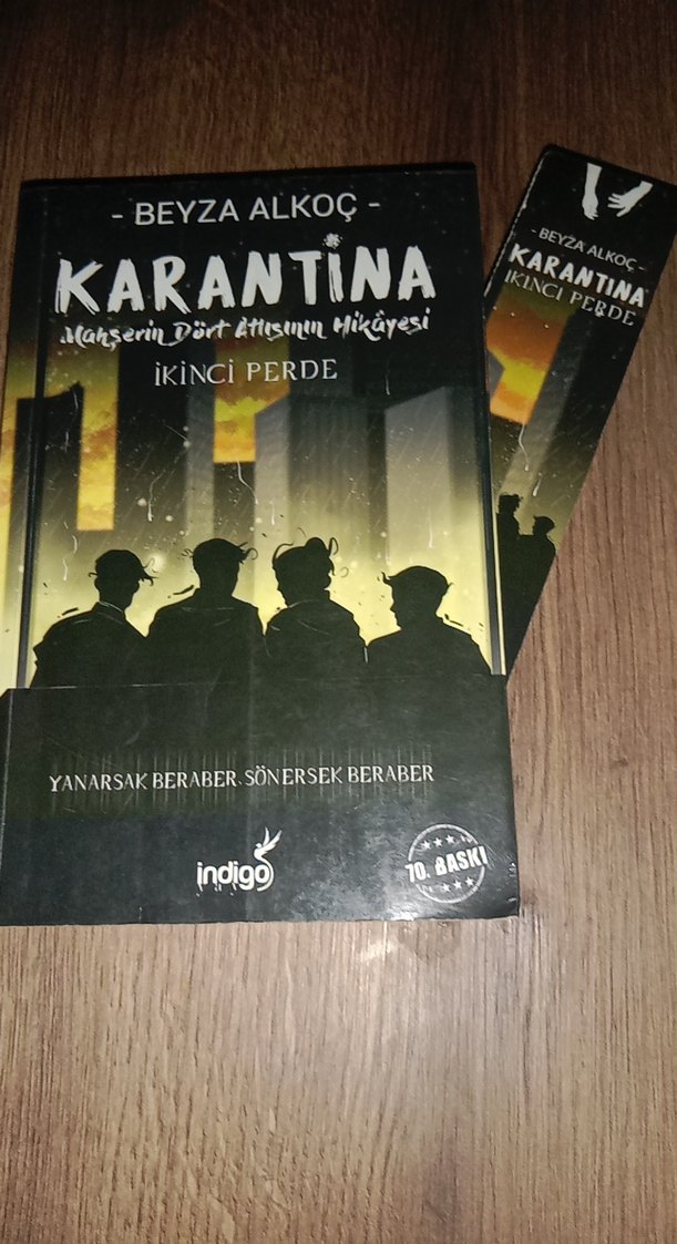 Beyza Alkoç'un "Karantina: İkinci Perde" adlı romanı, dört arkadaşın hikayesini anlatıyor. Indigo yayınevinden, 70. baskı. Birlikte yanma ve sönme teması işlenmiş.