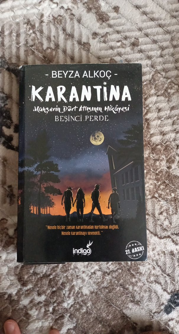 Beyza Alkoç'un Karantina adlı romanı, Mahşerin Dört Atlısı'nın hikayesini Beşinci Perde başlığıyla anlatıyor. Kapakta gece manzarası ve dört figür yer alıyor.