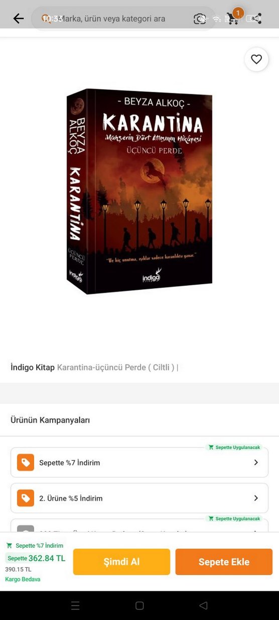 Beyza Alkoç'un Karantina adlı romanı, Indigo yayınevinden 67. baskı. Şehrin dört perdesini anlatan duygusal ve sosyal bir hikaye.