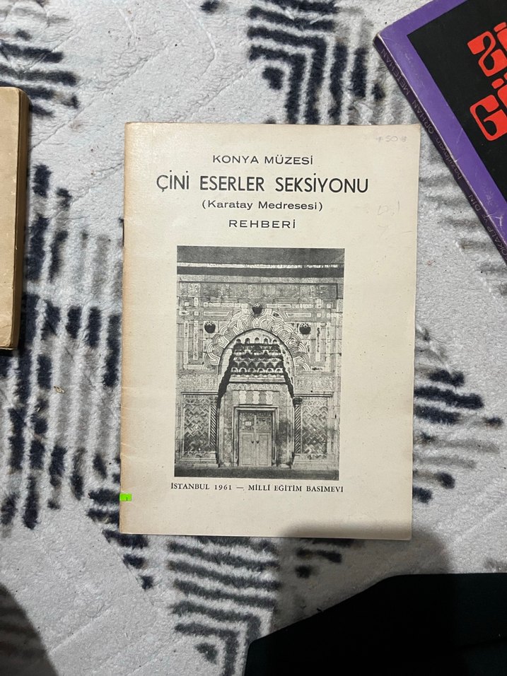 1941 tarihli bu rehber, Konya Müzesi Çini Eserler Seksi'ni ve Karatay Medresesi'ndeki eserleri anlatır. Tarihî ve sanatsal bilgiler içerir.