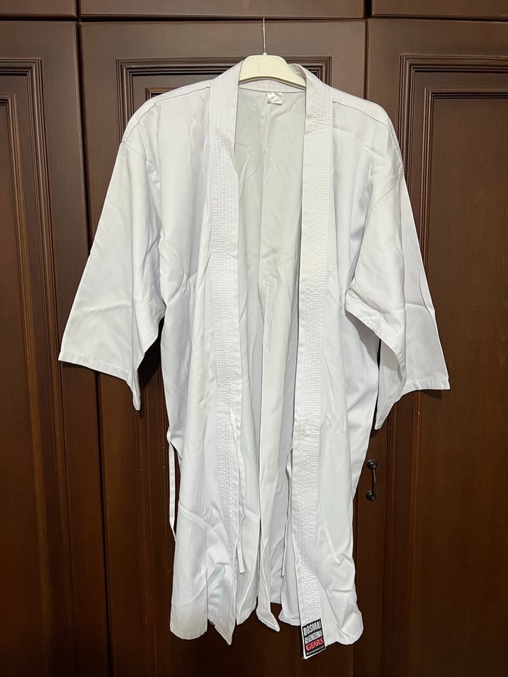 Karate kıyafeti. 1.90 boy için alıp kollarını kendime göre kesmiştim fotoğrafa bakıp alabilirsiniz. Birden fazla kez kullanıp yıkandı. Hiçbir hasarı yoktur.