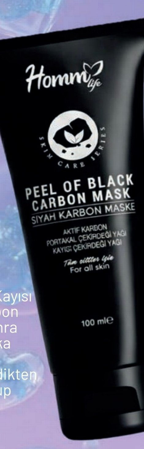 Aktif karbon, portakal çekirdeği yağı ve kayısı çekirdeği yağı içeren siyah karbon soyulabilir maske, tüm cilt tipleri için uygundur.