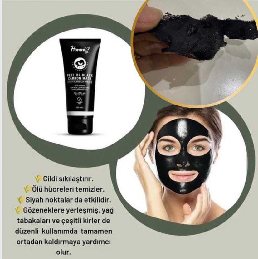 Cildi sıkılaştıran ve ölü hücreleri temizleyen siyah karbonlu maske. Siyah noktalar, yağ kalıntıları ve kirleri etkili şekilde giderir, gözenekleri derinlemesine temizler.