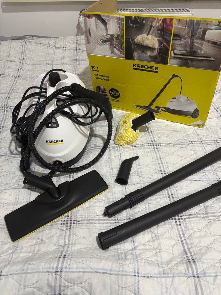 Karcher marka sarı ve gri renklerde, çeşitli aparatlarla çok amaçlı kullanıma uygun kompakt buharlı temizleyicidir. Garantisine hemen hemen bir seneye yakın süre var faturası vardır bir iki defa kullandım başka bi elektronik eşya alacağımdan dolayı satmak zorunda kaldım