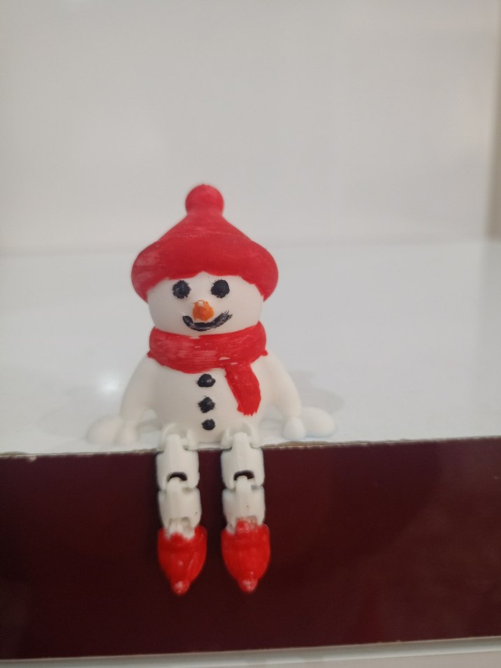 3d yazıcı ile yapılmıştır. Akrilik boya ile boyanmıştır. Renkli kardan adam figürü, kırmızı şapka, atkı ve botlarla süslenmiş. Hareketli bacaklarıyla sevimli bir dekorasyon sağlar. ⛄