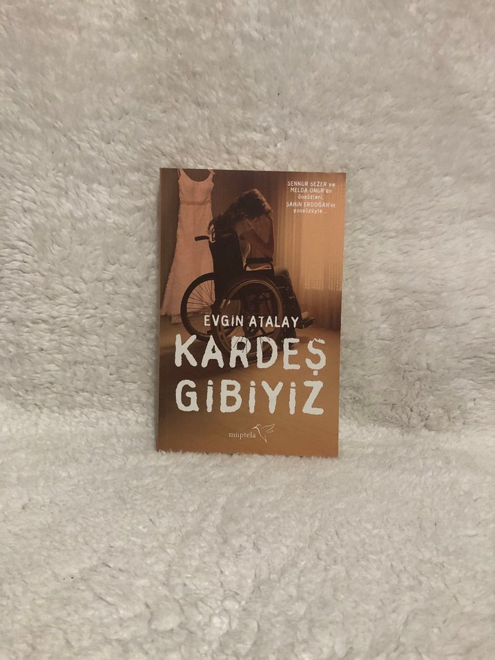 Evgin Atalay'ın "Kardeş Gibiyiz" romanı, derin duygusal bağları konu alıyor. Kapakta tekerlekli sandalye ve elbise yer alıyor.
