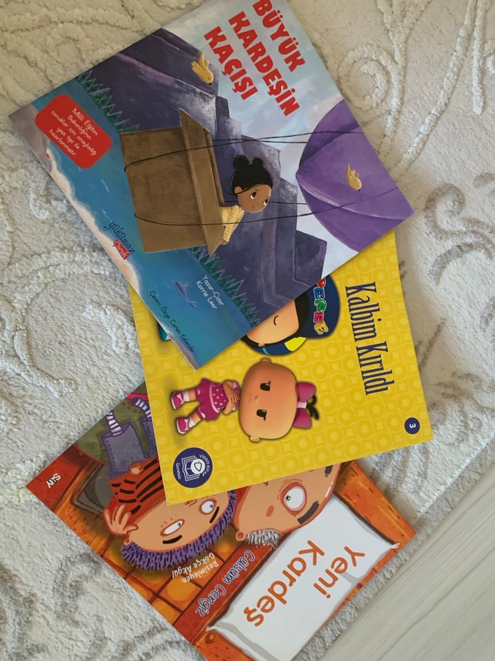 Renkli resimli ve eğlenceli hikayeler içeren "Kalbim Kırıldı" ve "Büyük Kardeşin Kaçışı" ve "Yeni Kardeş Geliyor" 3 çocuk kitabı seti.