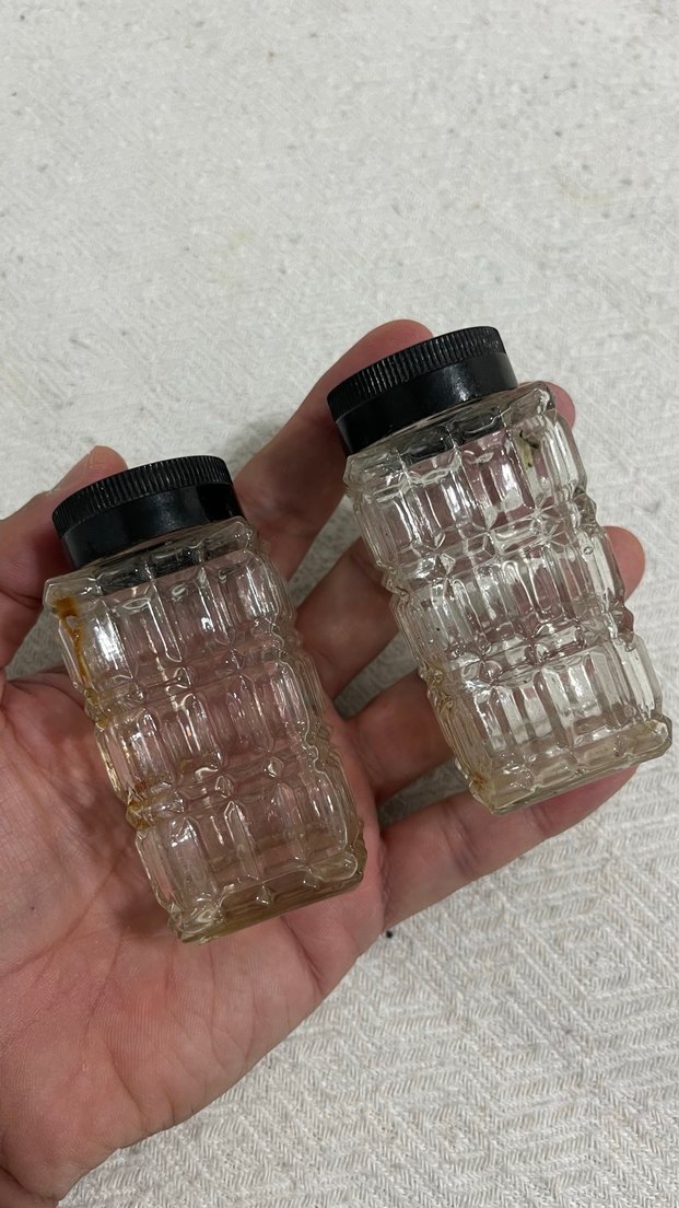 Kare Desenli Cam Tuzluk ve Biberlik Seti